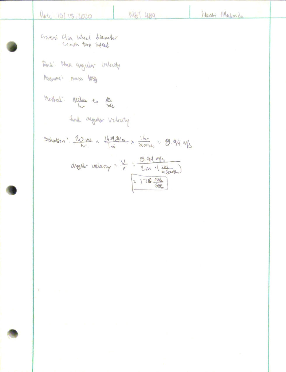 Figure 5: Finding the maximum angular velocity of the wheels.
